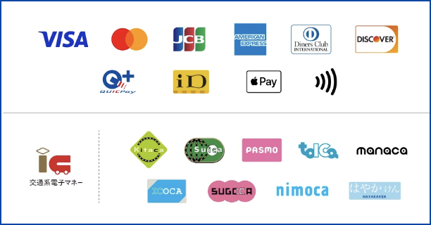 各種クレジットカード・交通系ICカード・電子マネーなどに対応しています